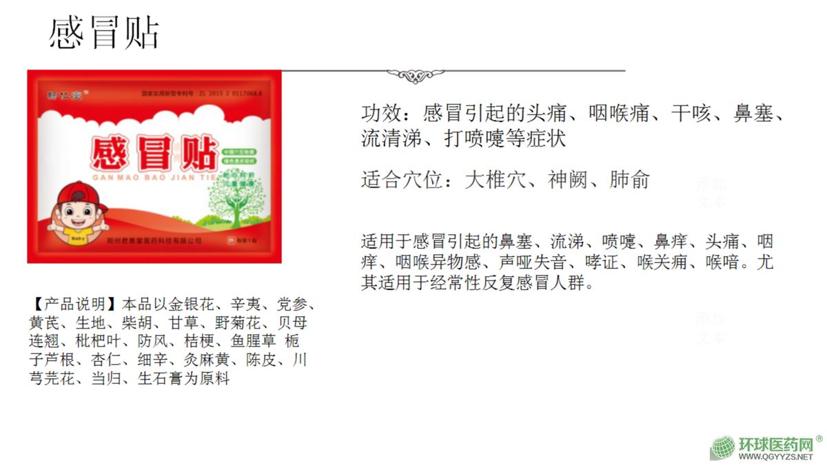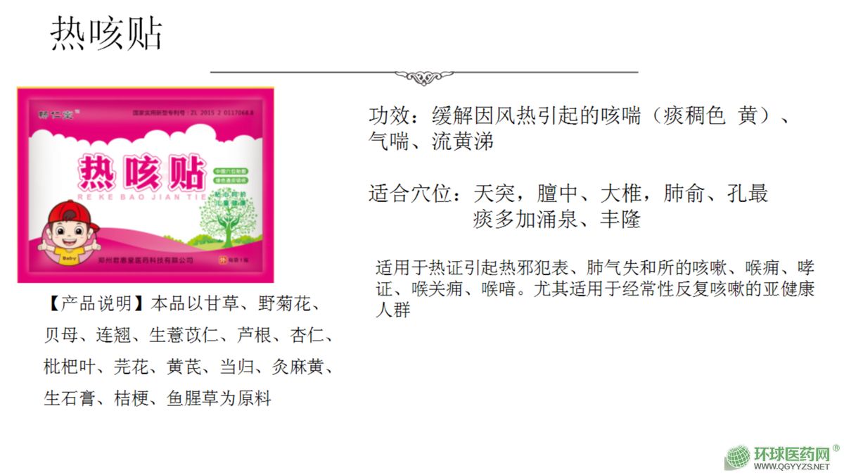 我公司主要開發(fā)生產(chǎn)兒童的現(xiàn)代醫(yī)療外貼劑,其主打兒童系列外貼,為純中藥制劑,主要?dú)、抑制?xì)菌、病毒、支原體,治療兒童的咳嗽、發(fā)燒、腹瀉、厭食等病癥。