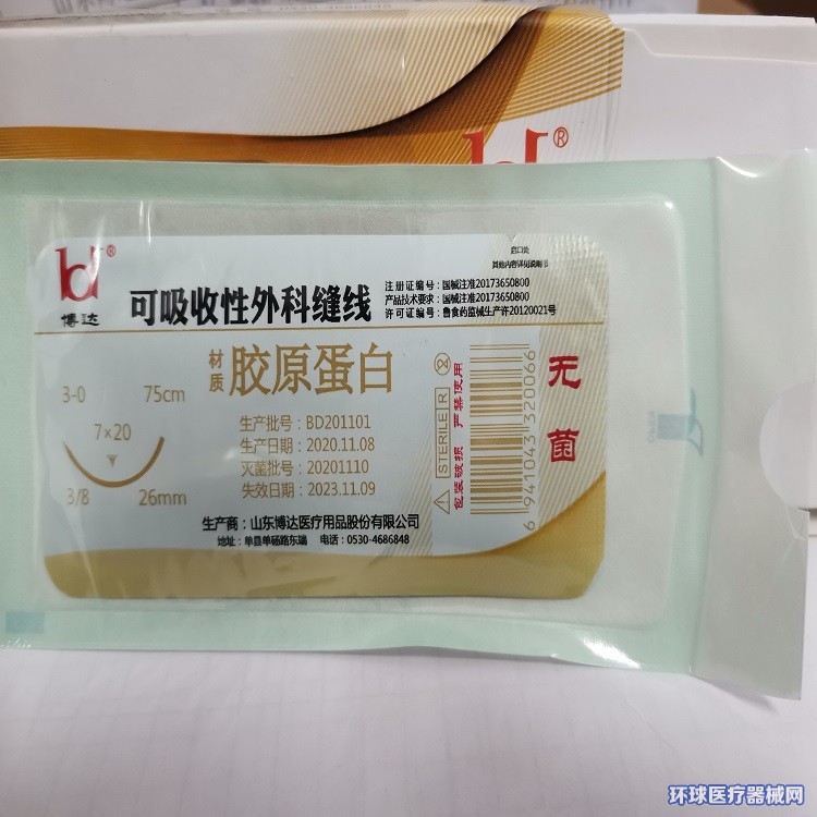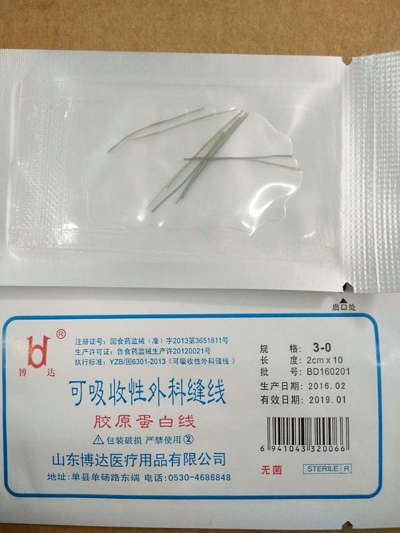 山東博達醫(yī)療用品股份有限公司是生產(chǎn)可吸收性外科縫線專業(yè)廠家,主要產(chǎn)品有可吸收縫合線 、內(nèi)窺鏡圈套線、穴位埋線、快吸收美容線、醫(yī)用羊腸線 膠原蛋白線以獨特的生物技術(shù)提取了健康哺乳動物內(nèi)臟的膠原蛋白為基材,采用先進獨特的工藝加工而成,線體的主要成分為高純度膠原蛋白,并獲得了國家發(fā)明專利,頒布了YZB/國6301-2013《可吸收性外科縫線》產(chǎn)品標準,并通過了ISO9001:2008和ISO13485:2003質(zhì)量管理體系認證。