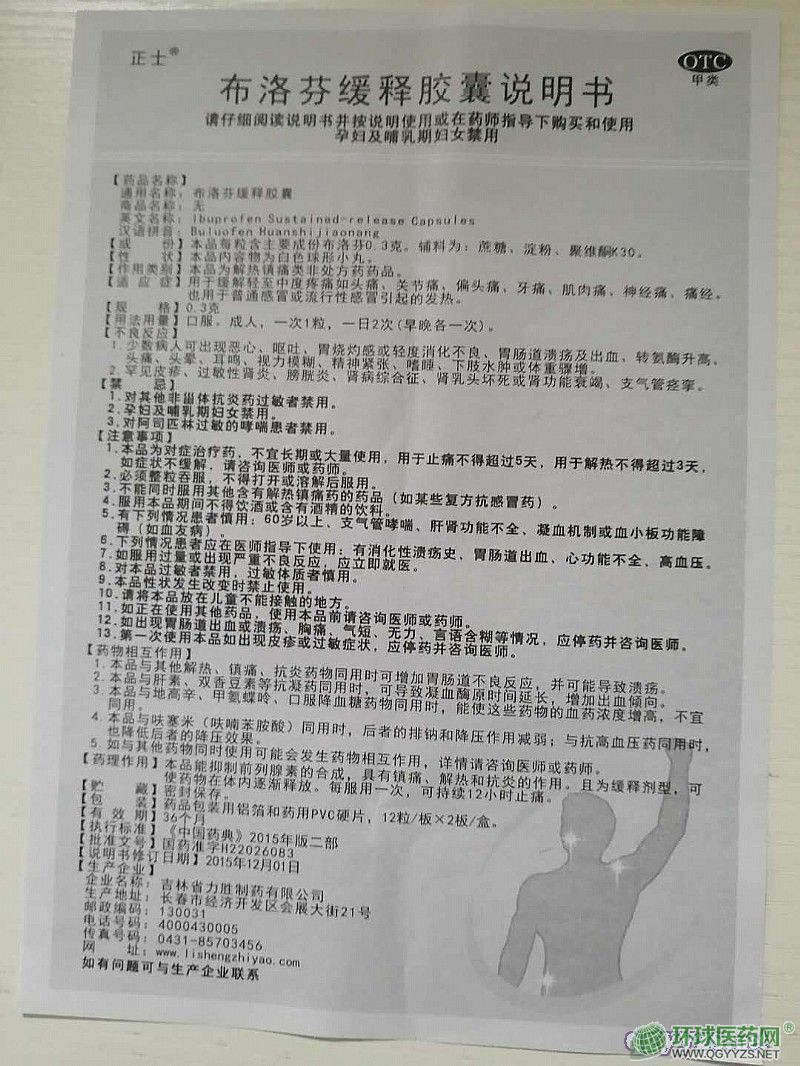 | 通用名稱 | 布洛芬緩釋膠囊 |