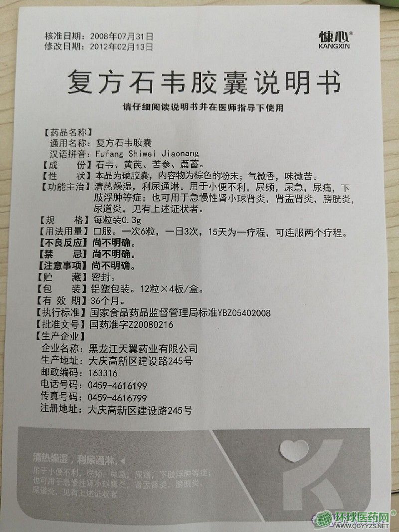 通用名稱: 復(fù)方石韋膠囊