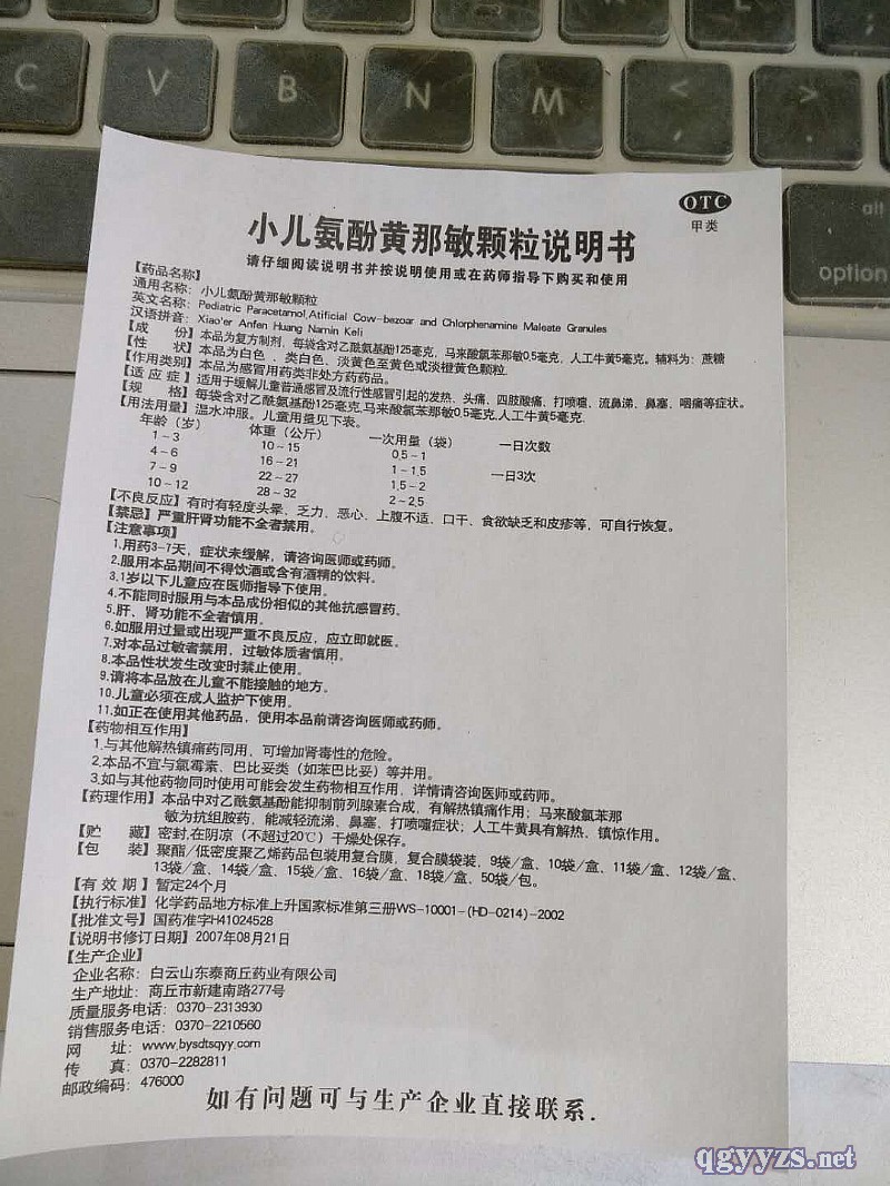 | 通用名稱 | 小兒氨酚黃那敏顆粒 |