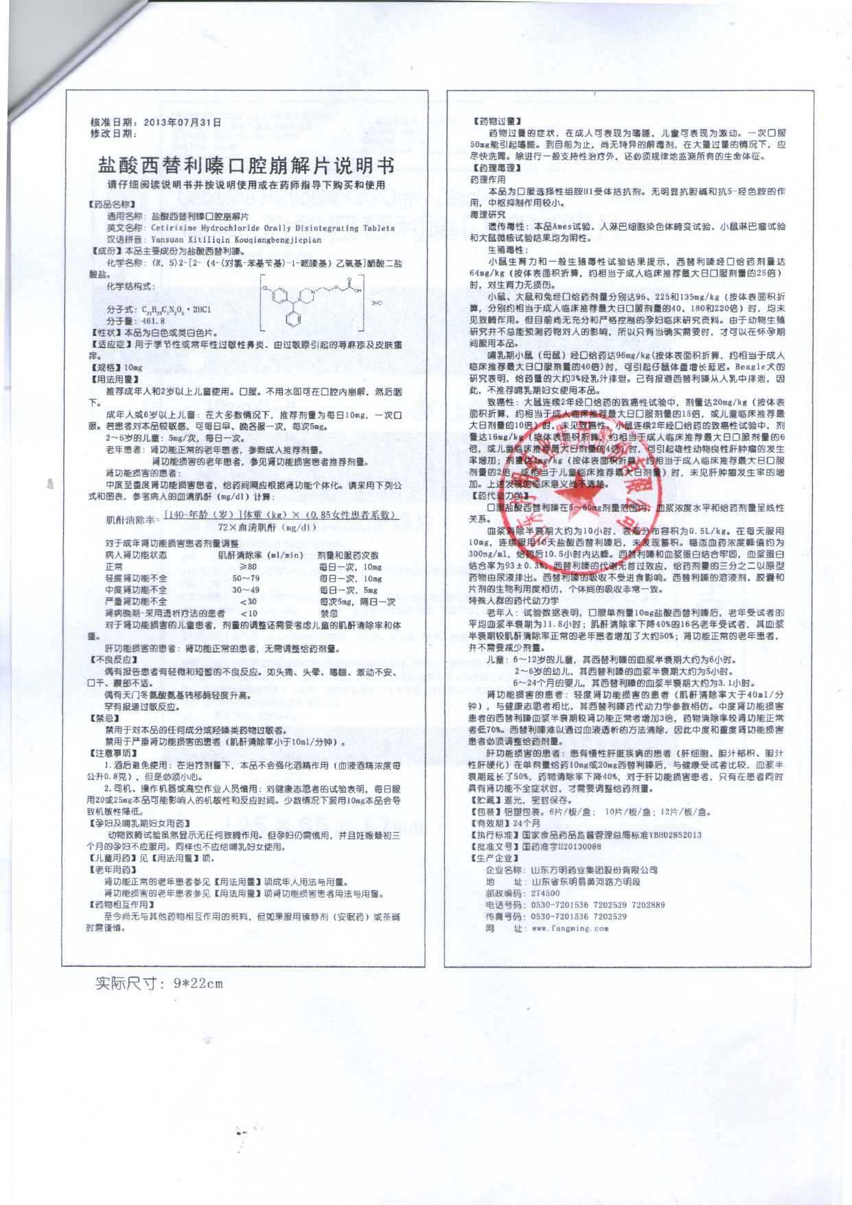 | 通用名稱 | 鹽酸西替利嗪口腔崩解片 |