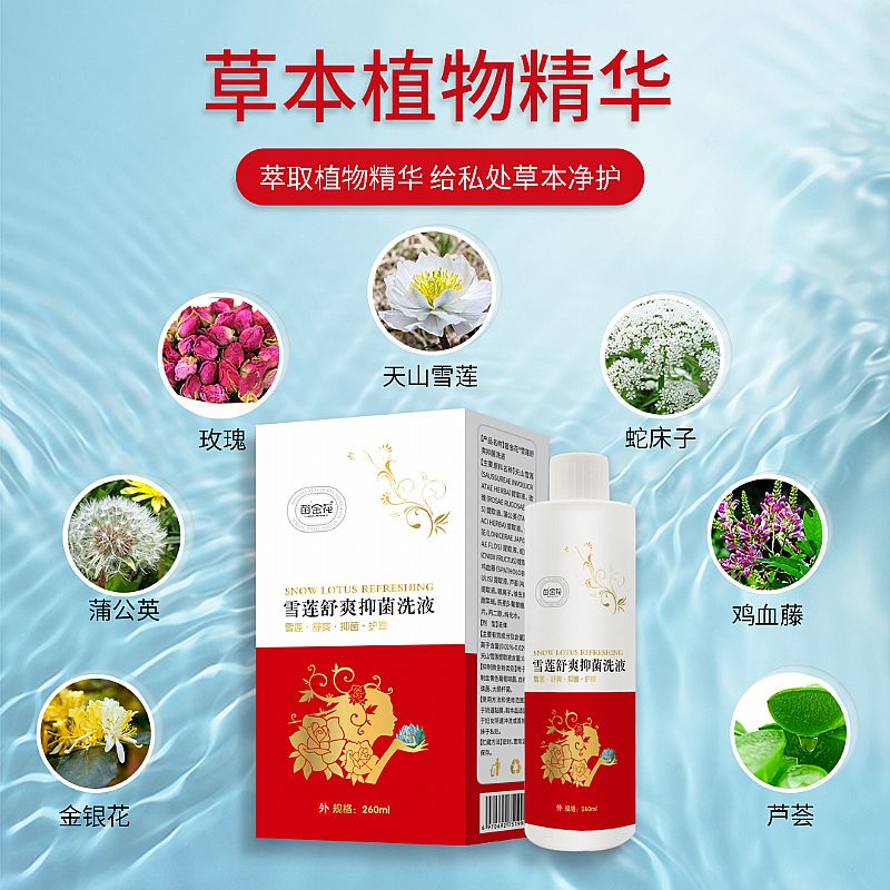 | 產(chǎn)品名稱 | 雪蓮舒爽抑菌洗液 |