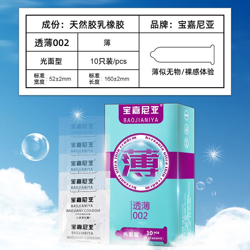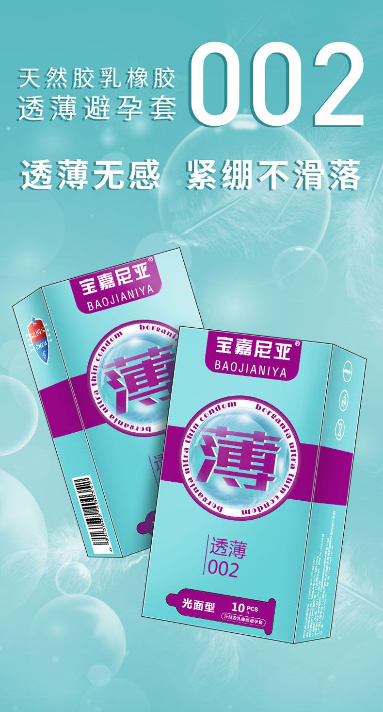 | 補(bǔ)充說(shuō)明 | 寶嘉尼亞避孕套采用天然乳膠為原料經(jīng)加工制成,潤(rùn)滑劑為二甲基硅油,對(duì)天然乳膠過(guò)敏者慎用,或使用前咨詢醫(yī)生,該避孕套為一次性用品,切勿重復(fù)使用,使用后請(qǐng)妥善棄置。該避孕套潤(rùn)滑劑中不含殺精劑或藥物成分。寶嘉尼亞避孕套在正確使用下,有助于降低受孕風(fēng)險(xiǎn)及減少某些性傳播疾病感染的風(fēng)險(xiǎn)。 |
