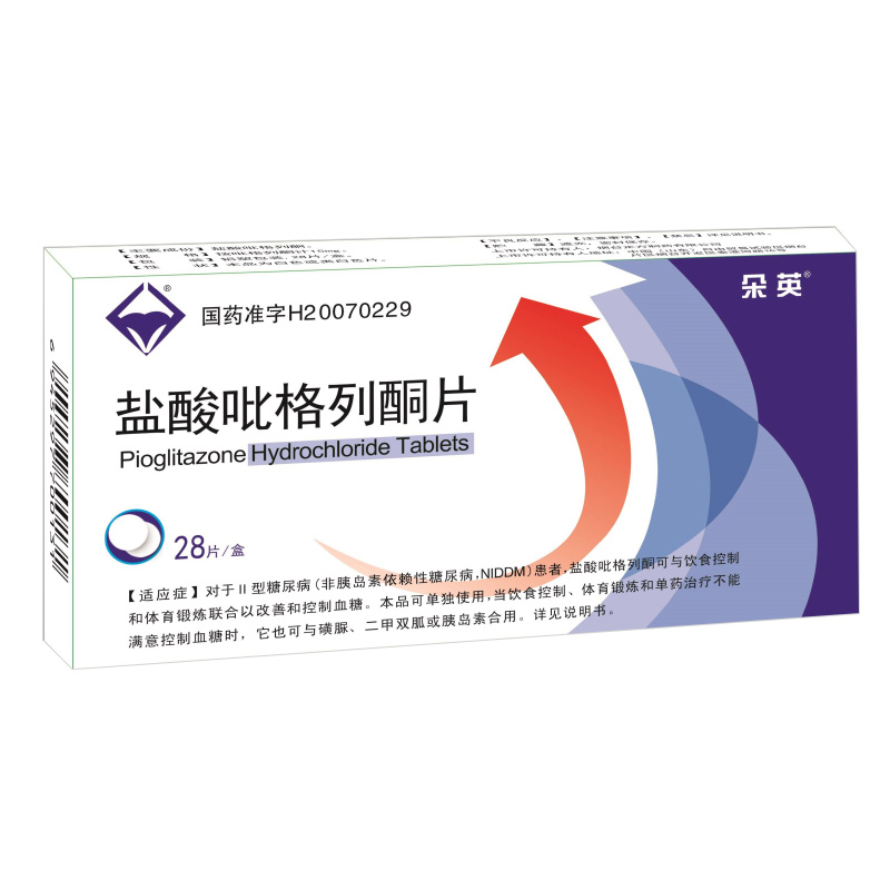 用法用量:本品僅用于口服,每天一次即可發(fā)揮較佳療效,且與進(jìn)食無關(guān)。單用飲食控制和體育鍛煉不足以控制血糖時(shí),可進(jìn)行鹽酸吡格列酮單藥治療,初始劑量可為15mg(一片)或30mg(2片)一日一次。