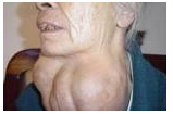 4、如為熱結(jié)節(jié)又稱毒性結(jié)節(jié)時,患者年齡多在40~50歲以上,結(jié)節(jié)性質(zhì)為中等硬度,有甲亢癥狀,甚至發(fā)生心房纖維性顫動及其他心律失常表現(xiàn),如有出血時可有痛感,甚至發(fā)熱。結(jié)節(jié)較大時可發(fā)生壓迫癥狀,如發(fā)音障礙,呼吸不暢,胸悶、氣短及刺激性咳嗽等癥狀。
