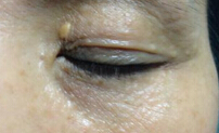 2、臨床表現(xiàn):其特征為在上眼瞼內眥處發(fā)生橘黃色針頭大或豆大丘疹,邊緣明顯,略高出皮面,觸之柔軟,有時波及下眼瞼,融合后形成黃色圈。有少數(shù)患者還同時伴有手掌、指縫、臀溝、肘部和腘窩部的黃色瘤出現(xiàn)。無特殊癥狀,但影響美觀