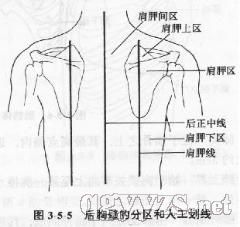8、肩胛線:(左、右)為雙臂下垂時通過肩胛下角所作與后正中線平行的垂直線,故亦稱
