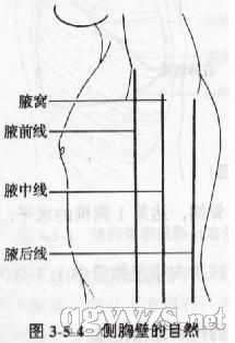 6、腋 中 線:(左、右)為自腋窩頂于腋前線和腋后線之間向下的垂直線。它與腋前線和腋后線距離相等。