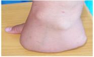 2、腱鞘囊腫:多發(fā)生在腕關(guān)節(jié)背面或橈側(cè),為圓形無痛性隆起,觸之堅韌,推之可沿肌腱的垂直方向稍微移動。