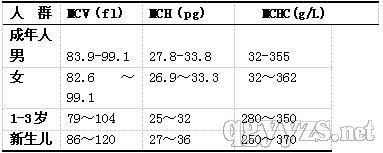 (一)參 考 值: MCV、MCH、MCHC參考值