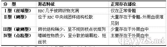 在紅細(xì)胞發(fā)育過程中,RNA含量有明顯規(guī)律性變化,即由原始階段較為豐富,然后逐漸減低,至細(xì)胞完全成熟后消失或接近消失,即紅細(xì)胞中網(wǎng)線狀結(jié)構(gòu)越多,表示細(xì)胞越幼稚。ICSH將Ret分為4型。