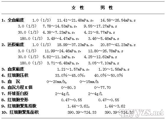 血液流變學檢查項目及參考值四、血液流變學檢查項目及參考值: