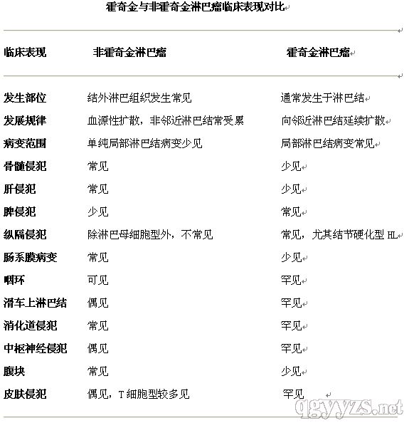 1、淋巴結(jié)無痛性、進(jìn)行性腫大,淺表淋巴結(jié)起病,早期分散,晚期融合成團(tuán),質(zhì)如硬橡膠,以及深部淋巴結(jié)腫大可引起相應(yīng)壓迫癥狀,沿相鄰淋巴結(jié)侵襲轉(zhuǎn)移;