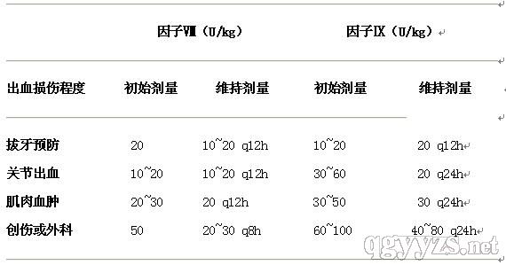 ~30h。 VIII因子的補充至少每天2次輸注;因子IX則可每天1次輸注。輕度出血維持3天;中度至重度出血,維持7 ~14天。維持劑量可減半。
