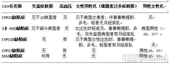 (一)CAH各類型臨床表現(xiàn)鑒別