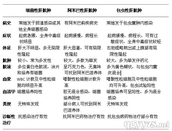 (三)診斷要點:在急性膽道感染和腸道炎癥患者中,如突然發(fā)生膿毒性的寒戰(zhàn)和高熱,并伴有肝臟腫大和肝區(qū)疼痛者,應(yīng)想到有肝膿腫可能。如患者白細(xì)胞數(shù)明顯增多,X線檢查發(fā)現(xiàn)肝臟腫大,或有液平面可見,且右側(cè)膈肌活動受限制者,對診斷更有幫助;而B型超聲檢查作為首選的檢查方法,其陽性診斷率可達(dá)96%以上。必要時可在B型超聲定位引導(dǎo)下或在肝區(qū)壓痛最明顯處,進(jìn)行肝膿腫穿刺,以確定診斷。