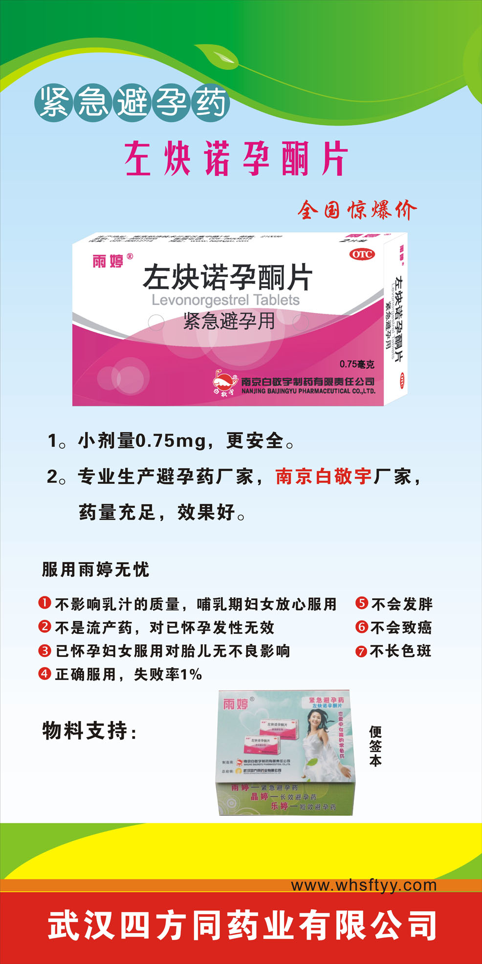 | 【產(chǎn)品賣點】 | 1。小劑量0.75mg,更。 2。專業(yè)生產(chǎn)避孕藥廠家,南京白敬宇廠家,藥量充足,效果好。 3。本品為、短效避孕藥,不含任何雌激素。 4。兩種服用方法(一次2片或一次1片,間隔12小時服用第二片)方便快捷。 |
