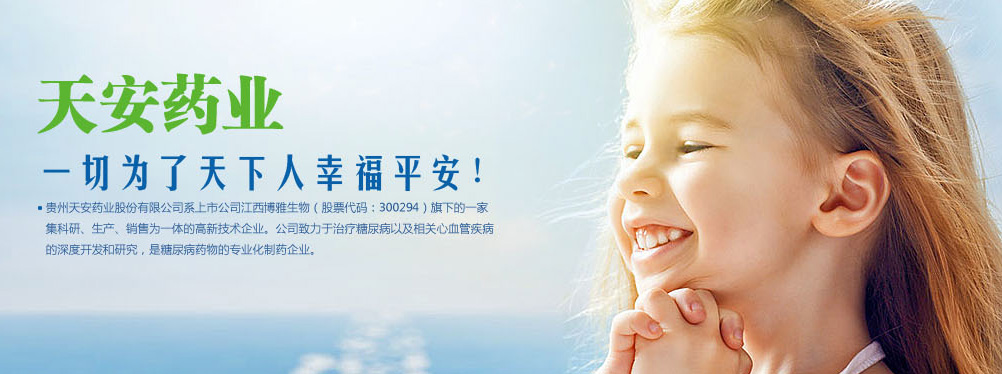貴州天安藥業(yè)股份有限公司系上市公司赤天化旗下的一家集科研、生產(chǎn)、銷(xiāo)售為一體的高新技術(shù)企業(yè),獲“貴陽(yáng)市十家重點(diǎn)制藥企業(yè)”稱號(hào)。公司致力于治療糖尿病以及相關(guān)并發(fā)癥藥物的深度開(kāi)發(fā)和研究。公司經(jīng)營(yíng)理念:天安——一切為了天下人幸福平安!公司發(fā)展戰(zhàn)略:以生物工程技術(shù)為龍頭,天然中成藥物生產(chǎn)為支柱,糖尿病系列用藥為主要開(kāi)發(fā)方向的糖尿病專業(yè)化制藥企業(yè)。公司擁有健全的營(yíng)銷(xiāo)網(wǎng)絡(luò),在全國(guó)三十多個(gè)省、市、自治區(qū)建有辦事處或銷(xiāo)售網(wǎng)點(diǎn),產(chǎn)品出口東南亞地區(qū)。