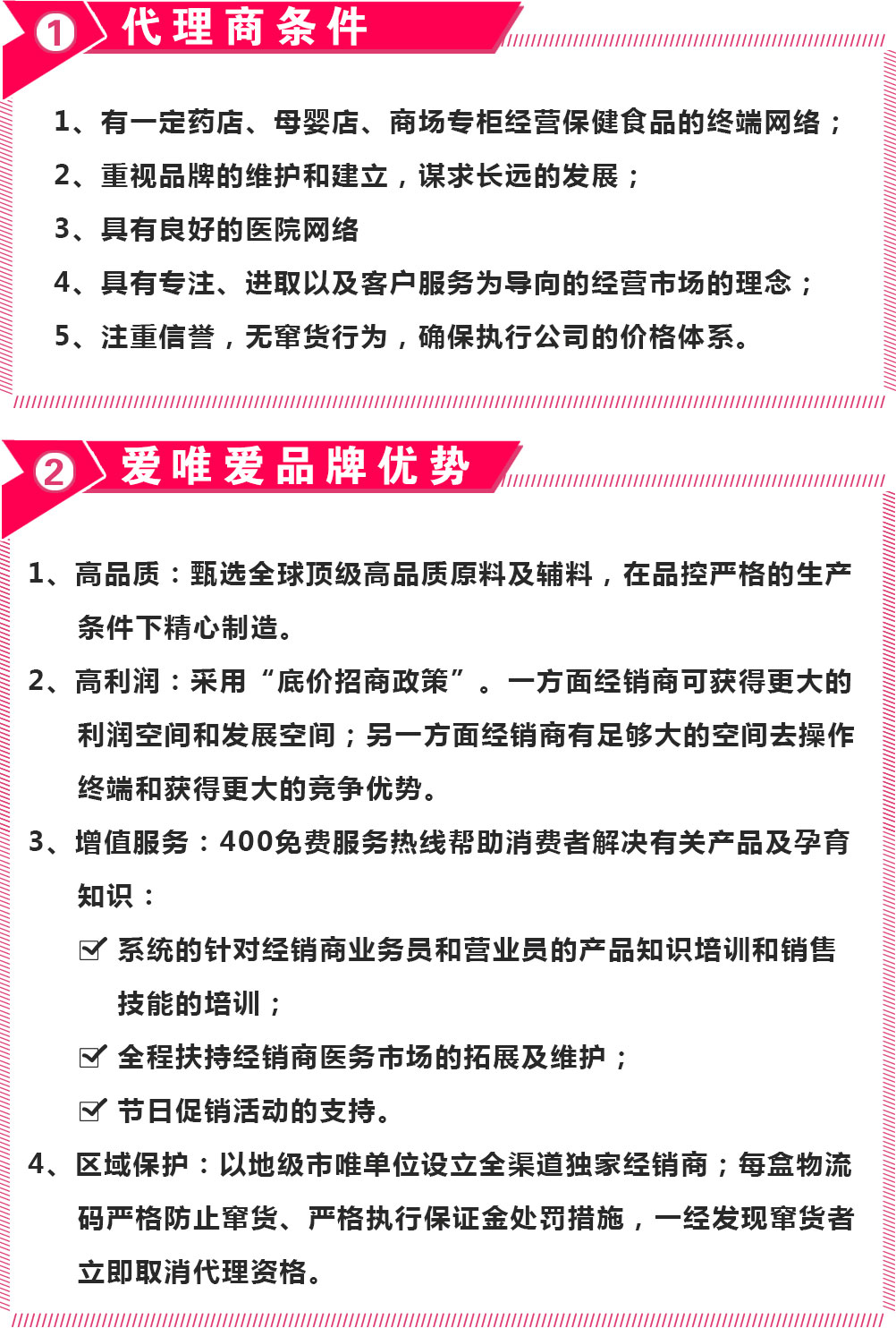 愛唯愛遵從“關注生命初1000天、愛唯愛優(yōu)多健康、1000天全程護養(yǎng)”的經營理念,始終恪守“全球甄優(yōu)、自然健康、呵護媽媽、優(yōu)養(yǎng)寶寶”的產品理念,作為孕嬰健康產業(yè)的整合者,從原材料采集到生產,堅持甄選全球優(yōu)質的研發(fā)與產地資源,采用優(yōu)質的原料,與制造商和品控機構建立了深度戰(zhàn)略合作關系,優(yōu)化了產品的品質。每個寶寶都是媽媽心中的驕傲,寶寶的成長離不開媽媽的呵護,愛唯愛就像母親一樣,精心護養(yǎng)每一位媽媽和寶寶。愛唯愛恢復大自然與人類天生的母子聯(lián)系,喚醒每個寶寶潛在的力量與天賦。