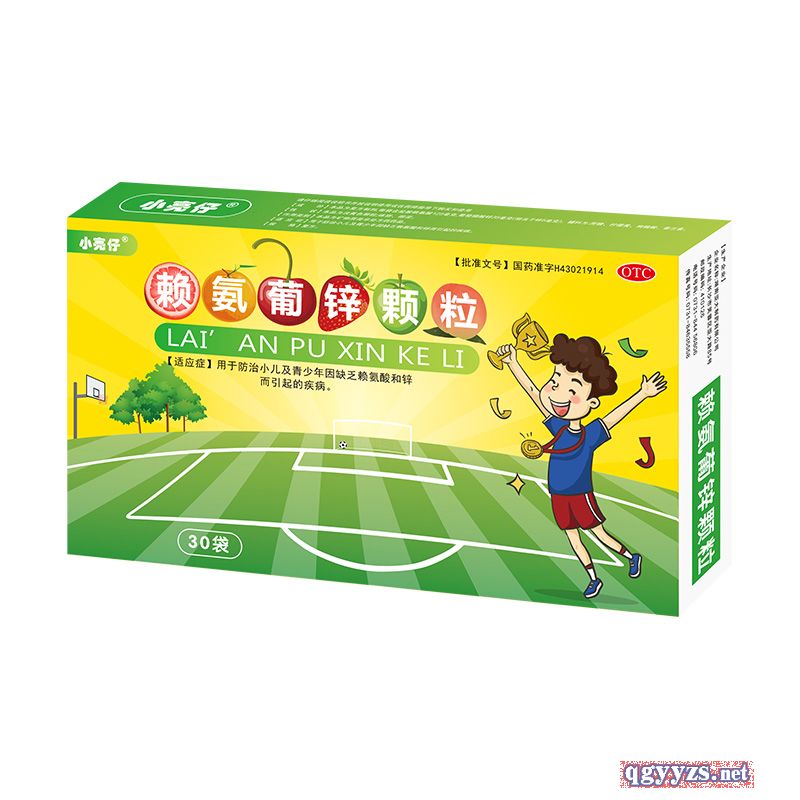 成 份 | 本品為復方制劑,每包含賴氨酸125毫克,葡萄糖酸鋅35毫克(相當于鋅5毫克)。輔料為:枸櫞酸、蔗糖、檸檬黃。 |