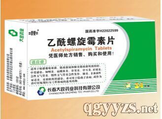 【成 份】 | 本品為單乙酰螺旋霉素Ⅱ、單乙酰螺旋霉素Ⅲ、雙乙酰螺旋霉素Ⅱ和雙乙酰螺旋霉素Ⅲ四個組分為主的混合物 |