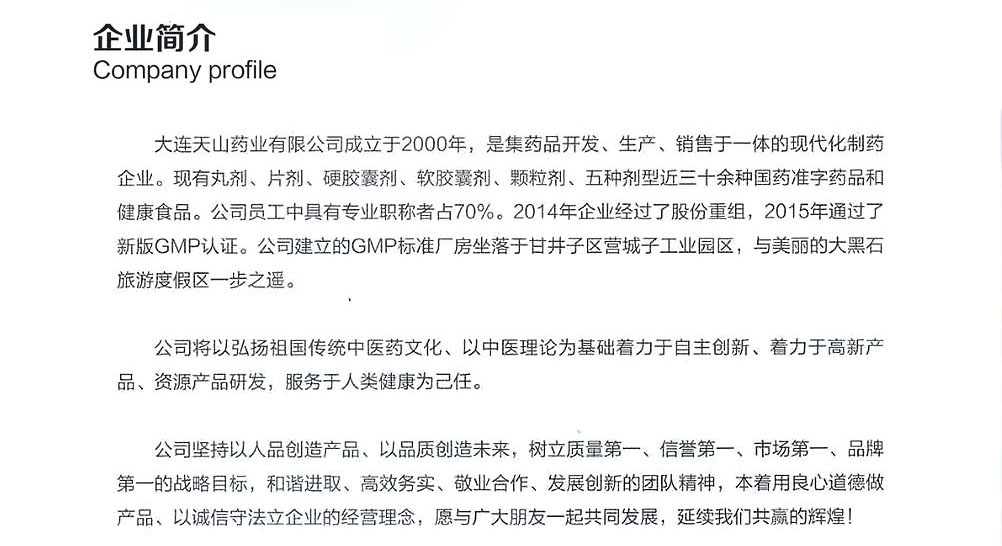 | 公司名稱:大連天山藥業(yè)有限公司 | |