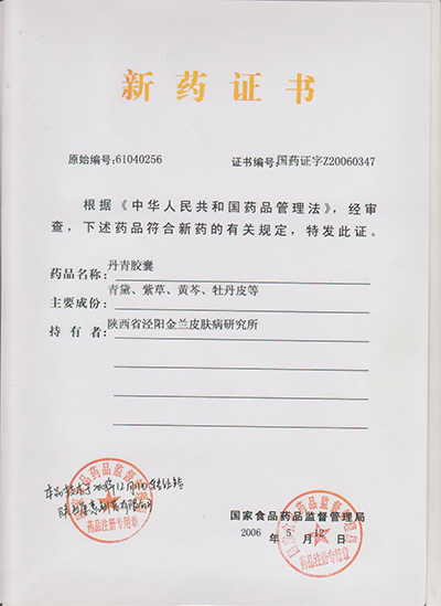 閆科列教授,出身中醫(yī)世家。1963年新疆參軍時被分配在天山腳下的部隊醫(yī)院,他用 良方配置的金蘭健膚膏、潔膚凈膏為部隊戰(zhàn)士和地方老百姓醫(yī)好了很多皮膚頑疾,多次受到部隊首長的嘉獎。在他的帶領下,部隊醫(yī)院成立了皮膚病科研小組,以天山得天獨厚的中藥資源,使科研小組攻克了一個又一個醫(yī)學難題。改革開放后,閆教授成立了陜西省金蘭皮膚病研究所,根據(jù)國家星火計劃項目,成立牛皮癬科研小組,自1984年至1998年,經過十多年的臨床研究,終于研制成功一種治療牛皮癬的純中藥制劑“丹青膠囊”,經過國家權威專家論證,1998年正式申報國家臨床,經由中國中醫(yī)藥研究院廣安門醫(yī)院,成都中醫(yī)藥大學附屬醫(yī)院,山東中醫(yī)藥大學附屬醫(yī)院,陜西省中醫(yī)藥研究院附屬醫(yī)院,西安交通大學第二附屬醫(yī)院長達十多年的臨床應用,2008年獲得國家批準,取得國家新藥證書,并獲得國家發(fā)明專利。