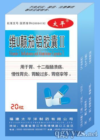 【成 份】 | 本品為復(fù)方制劑,每粒含氫氧化鋁140毫克,維生素U(碘甲基蛋氨酸)50毫克,顛茄提取物10毫克。輔料為:淀粉、硬脂酸鎂。 |