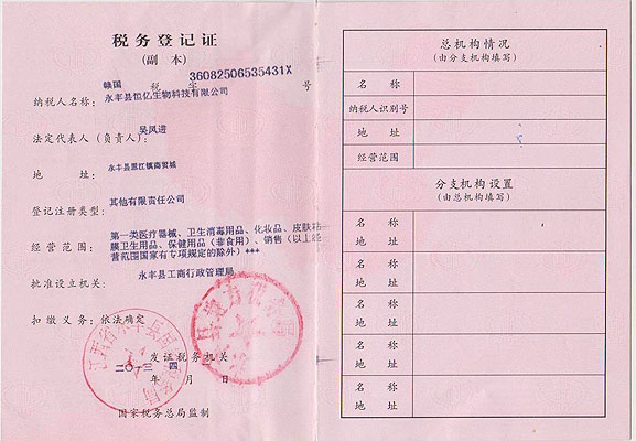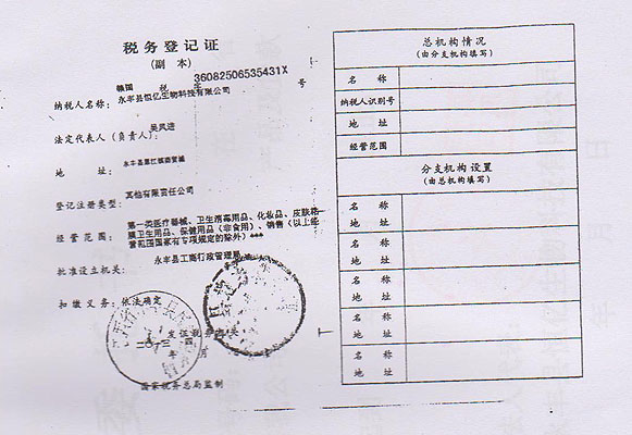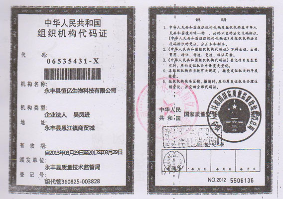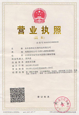 | 公司名稱:永豐縣恒億生物科技有限公司 | 公司名稱:江西康夫康生物科技有限公司 | ||||||||||||||||||||
