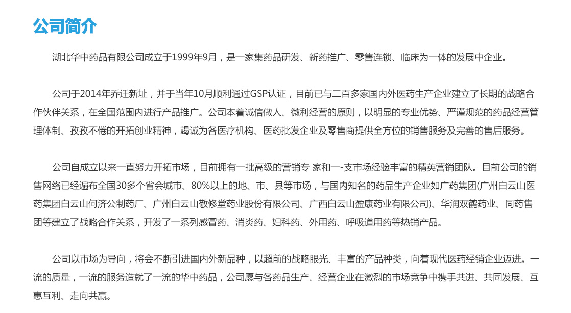 | 公司名稱:湖北華中藥品精品控銷事業(yè)部 | |