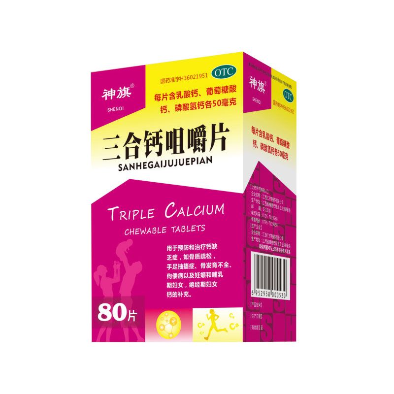 | 成 份 | 本品為復方制劑,每片含乳酸鈣、葡萄糖酸鈣、磷酸氫鈣各0.05克,(相當于鈣總含量22.6毫克)輔料為: |