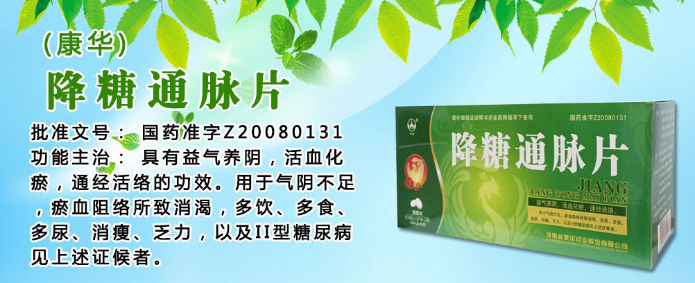 | 【功能主治】 | 用于氣陰不足,瘀血阻絡(luò)所致消渴,多飲、多食、多尿、消瘦、乏力、以及二型糖尿病見上述證候者 |