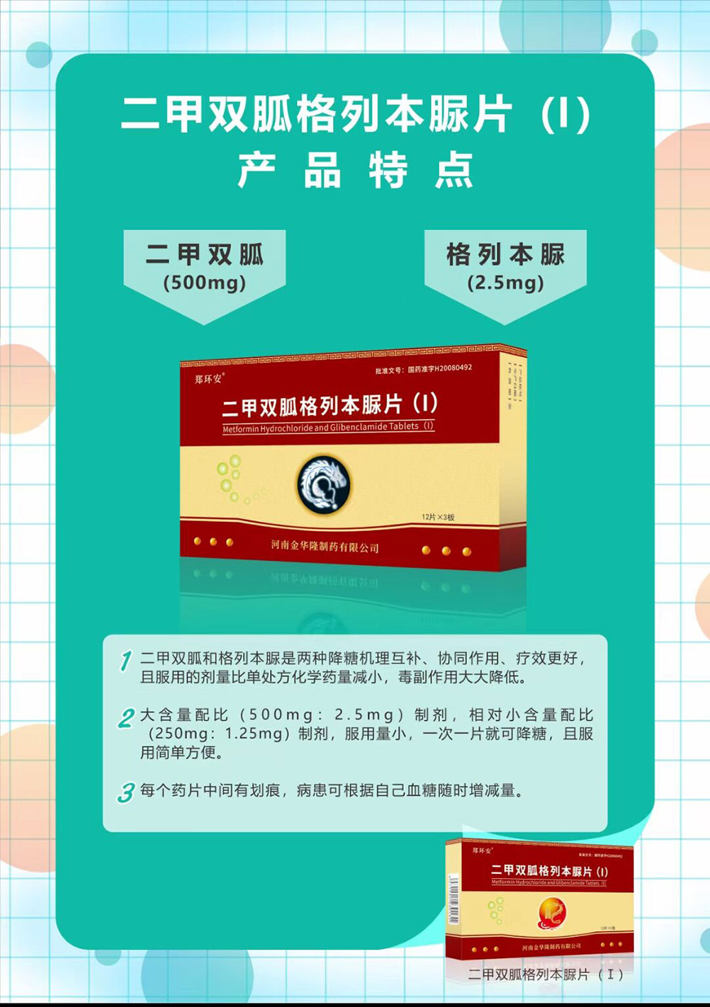 | 【規(guī) 格】 | 36片/盒。每片含格列本脲2.5mg與鹽酸二甲雙胍500mg。 |