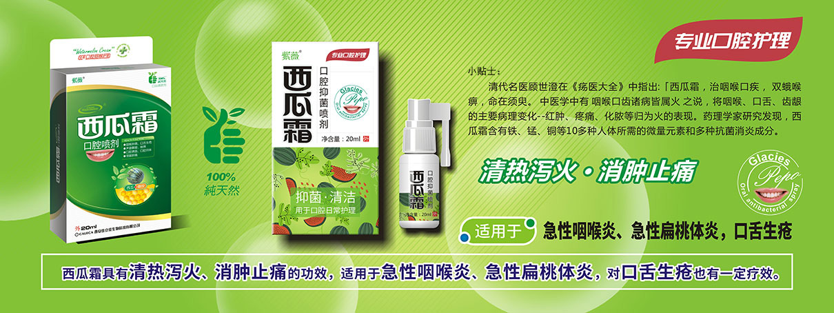 西瓜液、蜂膠、金銀花、青果汁、野菊花、薄荷、維生素C等。