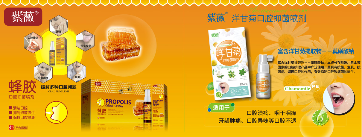 金銀花、野菊花、板藍(lán)根、青果、連翹、薄荷腦、硼砂、蜂膠等。