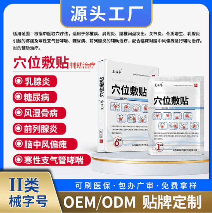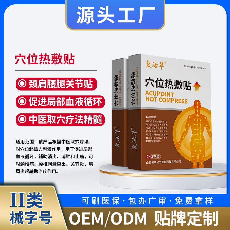 | 【產(chǎn)品賣點(diǎn)】 | 該產(chǎn)品適用于軟組織損傷、風(fēng)濕性關(guān)節(jié)炎、骨性關(guān)節(jié)炎、創(chuàng)傷性關(guān)節(jié)炎、頸椎病、腰肌勞損、肩周炎、腰部軟組織損傷、痛經(jīng)、宮寒、產(chǎn)后溫經(jīng)暖宮的輔助治療。 控銷;提供驗(yàn)廠;授權(quán);廣審 |