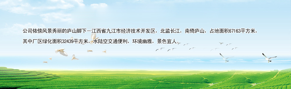 公司依傍風(fēng)景秀麗的廬山腳下―江西省九江市經(jīng)濟(jì)技術(shù)開(kāi)發(fā)區(qū),北監(jiān)長(zhǎng)江,南倚廬山,占地面積67163平方米,其中廠區(qū)綠化面積32439平方米,水陸空交通便利,環(huán)境幽雅,景色宜人。