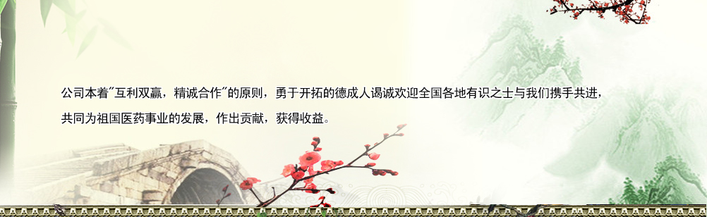 后,作為德成制藥發(fā)展的核心――先進的營銷管理體系是由科學準確的市場預(yù)測、成熟完善的營銷方案、嚴格高效的管理機制、**周到的售后服務(wù)和高素質(zhì)的營銷隊伍所構(gòu)成。公司本著"互利雙贏,精誠合作"的原則,勇于開拓的德成人謁誠歡迎全國各地有識之士與我們攜手共進,共同為祖國醫(yī)藥事業(yè)的發(fā)展,作出貢獻,獲得收益。