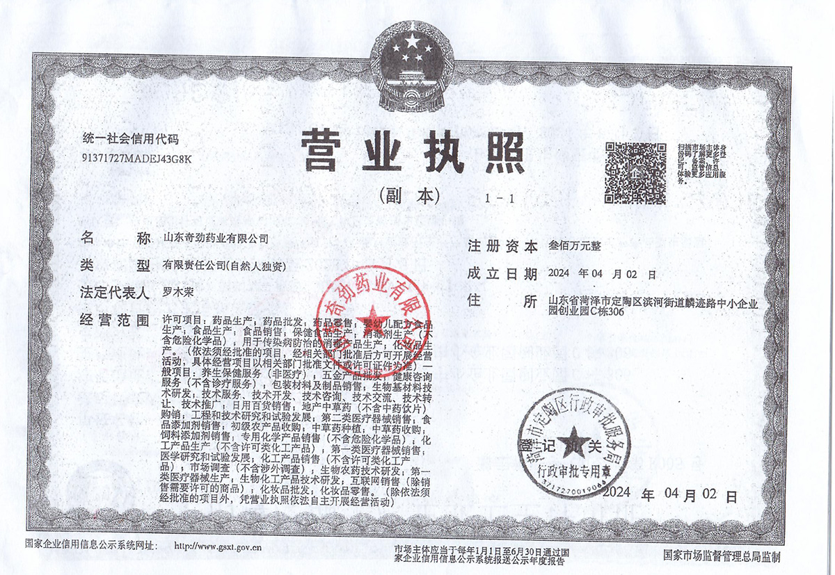 | 公司名稱:山東奇勁藥業(yè)有限公司(原山東百正藥業(yè)有限公司) |