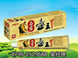 成 份 | 蝎毒、狼毒、蜂毒、紫草、白鮮皮、野菊花、升麻、蛇床子、黃柏、地膚子的提取物、薄荷腦、冰片、醋酸氯已定0.1%-0.3%(m/v)等。 |