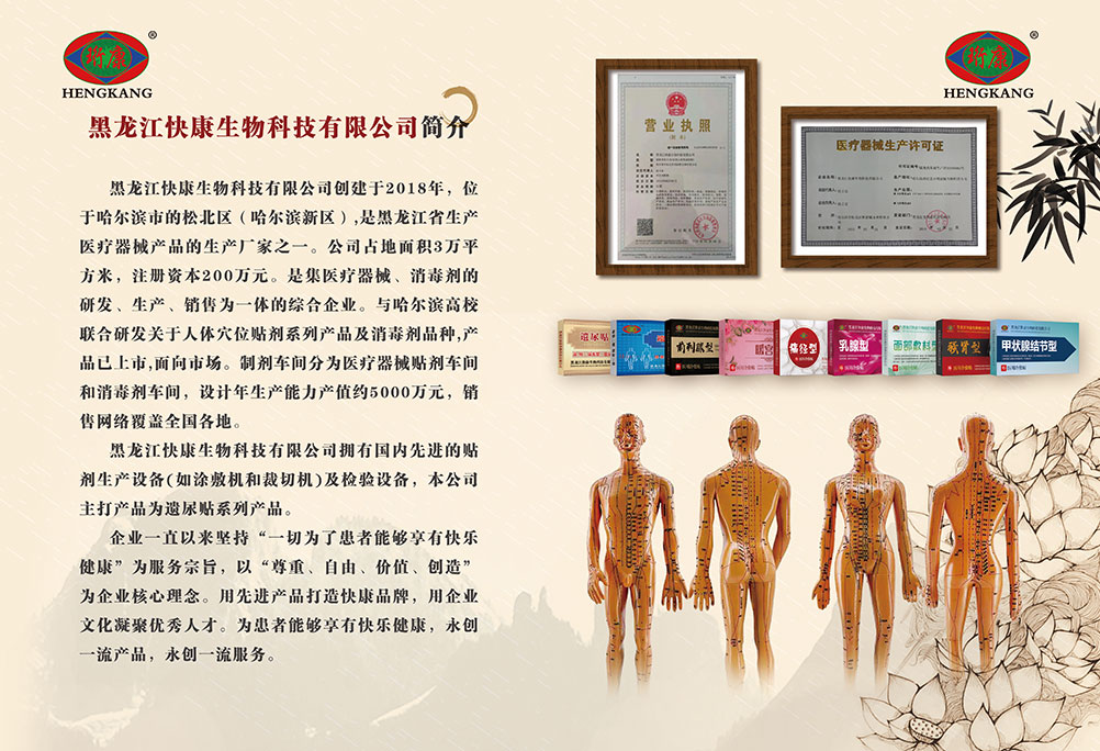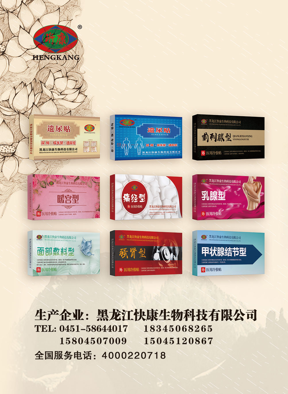 黑龍江快康生物科技公司擁有國(guó)內(nèi)先進(jìn)的貼劑生產(chǎn)設(shè)備(如涂敷機(jī)和裁切機(jī))及檢驗(yàn)設(shè)備。本公司主打產(chǎn)品為甲狀腺結(jié)節(jié)貼及泌尿系統(tǒng)貼系列產(chǎn)品。