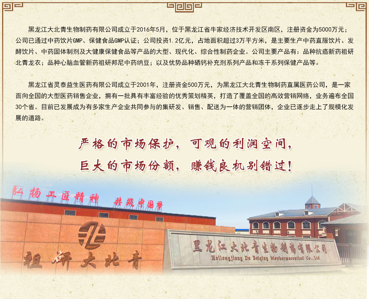 | 公司名稱:黑龍江大北青生物制藥有限公司 | |