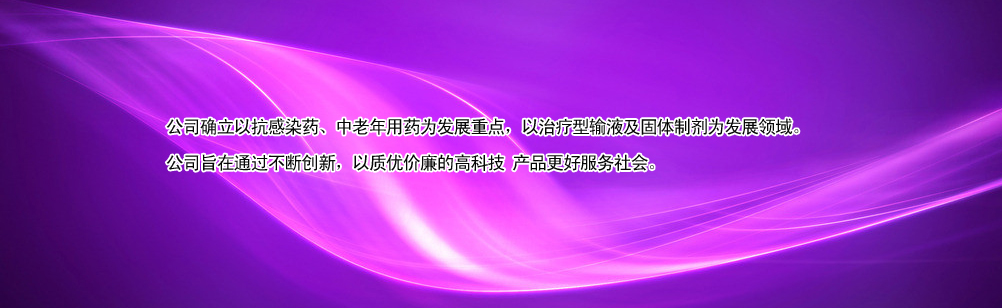公司在廣州、重慶、蘭州等各大城市設(shè)有地區(qū)辦事處。有一支文化素質(zhì)較高的營(yíng) 銷隊(duì)伍,為市場(chǎng)提供高質(zhì)量的產(chǎn)品和可靠的服務(wù)。公司確立以抗感染藥、中老年用藥為發(fā)展重點(diǎn),以治療型輸液及固體制劑為發(fā)展領(lǐng)域。公司旨在通過不斷創(chuàng)新,以質(zhì)優(yōu)價(jià)廉的高科技 產(chǎn)品更好服務(wù)社會(huì)。