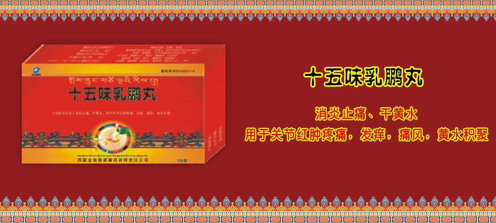 乳香、寬筋藤、決明子、渣馴膏、黃葵子、藏菖蒲、巴夏嘎、兒茶、訶子、安息香、毛訶子、鐵棒錘、木香、人工麝香、余甘子。 |