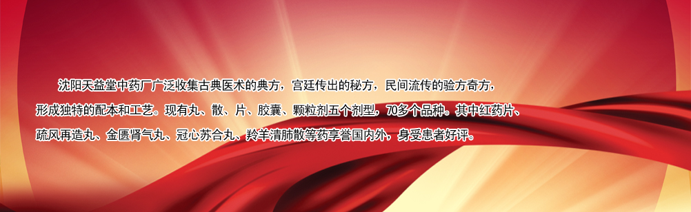 在近兩個世紀的漫長歲月里,沈陽天益堂中藥廠廣泛收集古典醫(yī)術(shù)的典方,**傳出的**,民間流傳的驗方奇方,形成獨特的配本和工藝,F(xiàn)有丸、散、片、膠囊、顆粒劑五個劑型,70多個品種。其中紅藥片、疏風再造丸、金匱腎氣丸、冠心蘇合丸、羚羊清肺散等藥享譽國內(nèi)外,身受患者好評。
