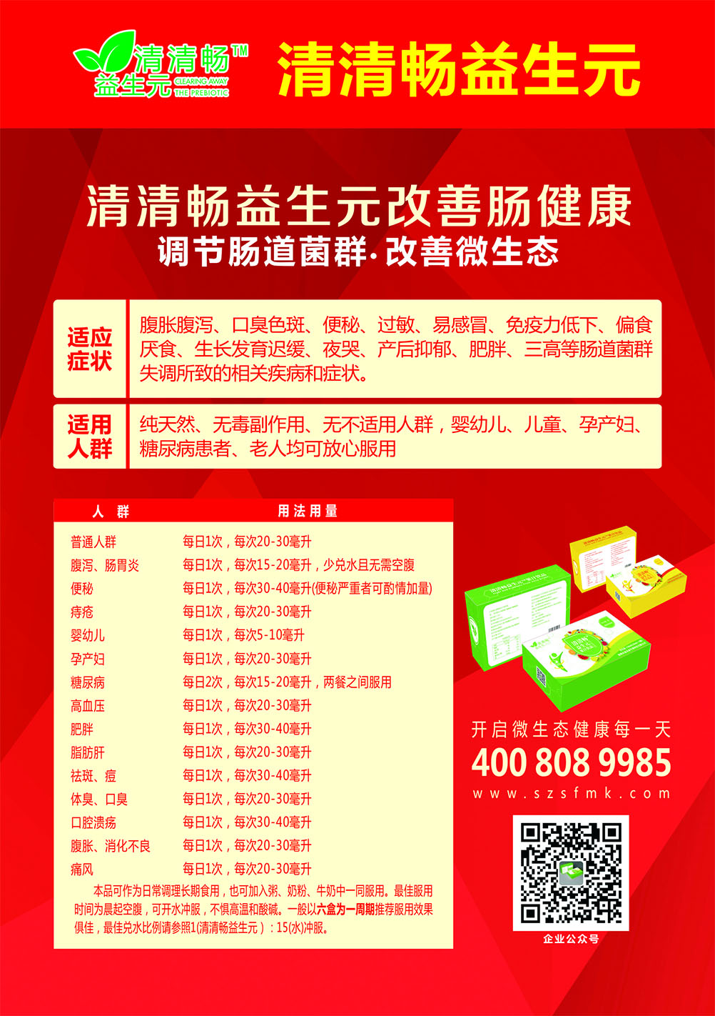 為響應(yīng)國家“十一五規(guī)劃”改善國民身體健康,實施第六大公眾營養(yǎng)項目,借助大健康行業(yè)的趨勢,2017年2月成立清清暢益生元品牌,以人體腸道微生態(tài)健康與世界各國交流研究并獲得多項世界成果。