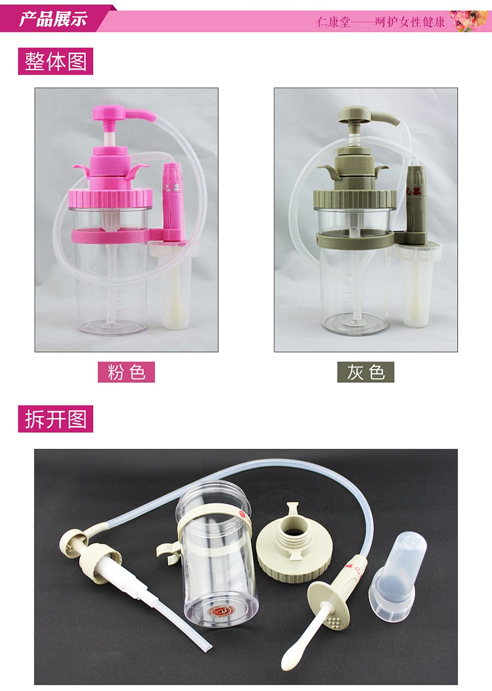 | 仁康堂牌手動(dòng)加壓式醫(yī)用陰道沖洗器(灰色) | |