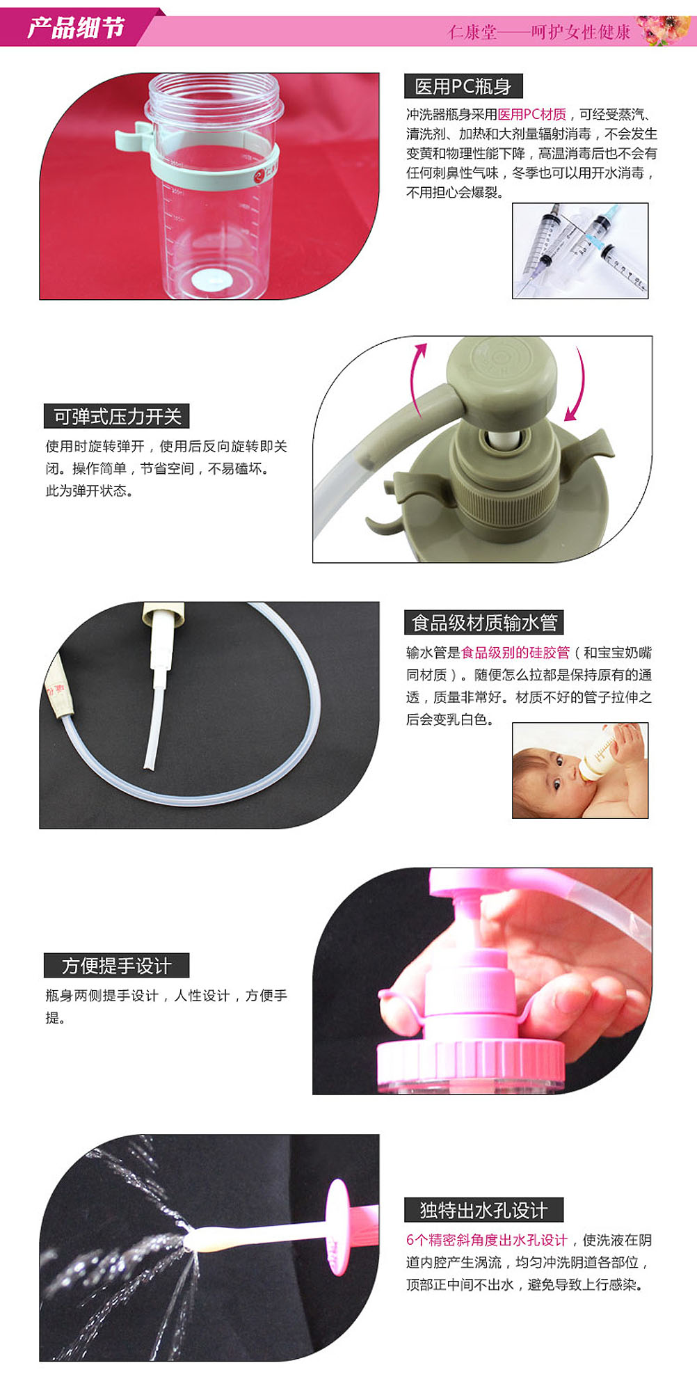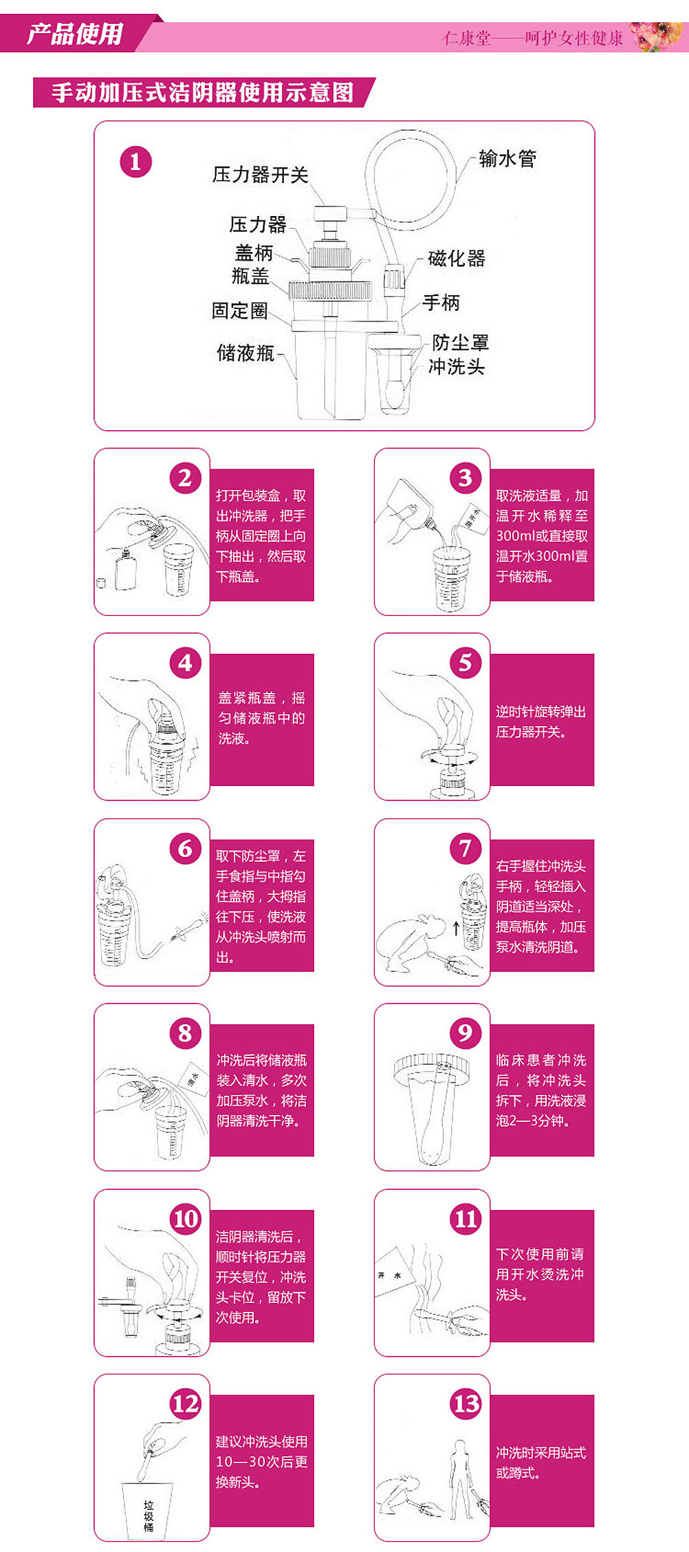 | 仁康堂牌手動(dòng)加壓式醫(yī)用陰道沖洗器(紅色) | |