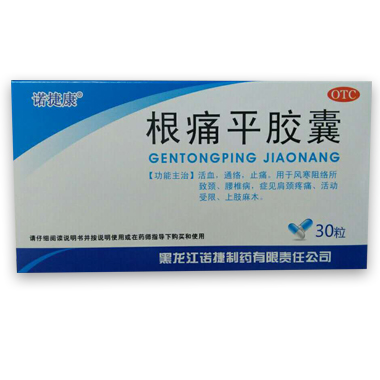 | 功能主治 | 活血,通絡,止痛。根痛平膠囊用于風寒阻絡所致頸腰椎病,癥見肩頸疼痛,活動受限,上肢麻木等。 |